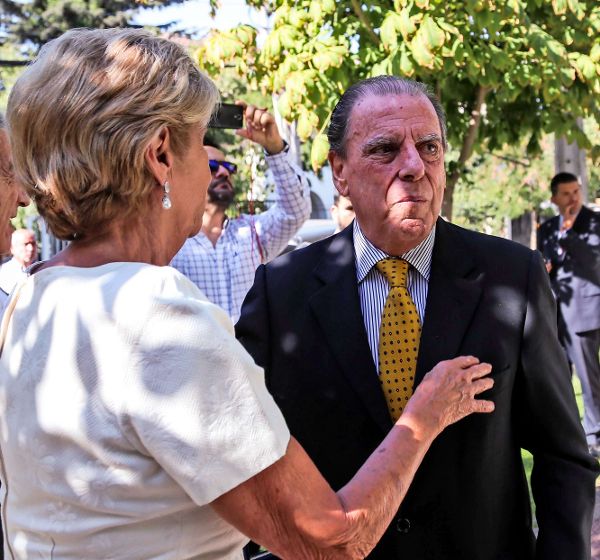 Marta Larraechea saluda a su cuñado Francisco Frei al inicio del encuentro.