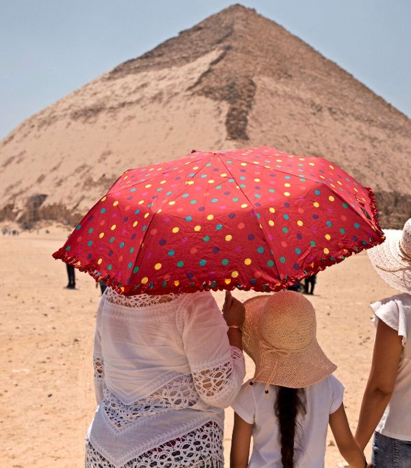 Las autoridades egipcias abrieron el fin de semana el acceso a los turistas de dos pirámides en Dahshur, al sur de El Cairo. La más atractiva es la pirámide romboidal, construida para el faraón Sneferu, fundador de la Cuarta Dinastía, hace 4.600 años. Su apariencia es inusual. Los primeros 49 metros, que en gran parte han mantenido su suave revestimiento de piedra caliza, presentan un ángulo inclinado de 54 grados, pero este disminuye notoriamente en la sección superior.