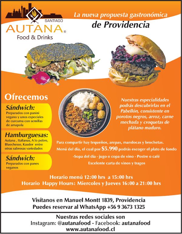 Precio: $6.000 (menú con alternativas vegetarianas) y $8.000 (con carnes).