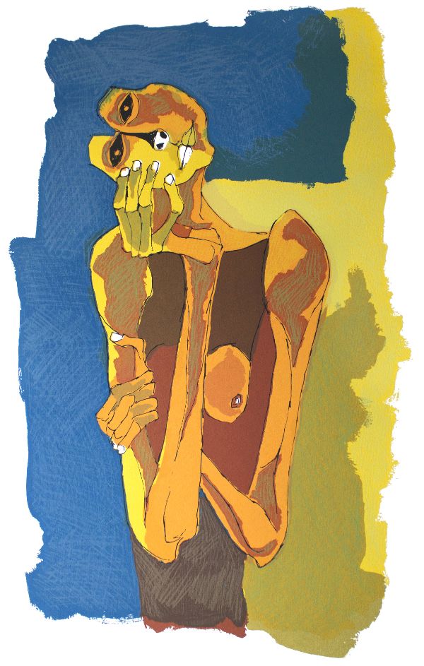 Esa sed de reivindicación hacia los pueblos indígenas se ve en las piezas que conforman La edad de la ira, una de las dos series que conforman la exhibición de 32 obras que el Museo Artequín Santiago trae en conjunto con la Corporación Aldea Rural y Fundación Guayasamín.