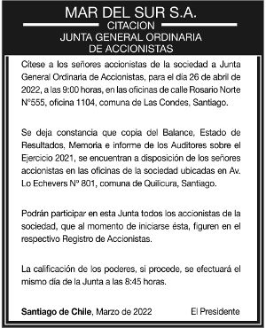 El próximo 26 de abril, SQM realizará su junta anual de accionistas en la cual se elegirá un nuevo directorio, que además deberá designar al presidente de la compañía en reemplazo de Alberto Salas, quien no se repostulará.